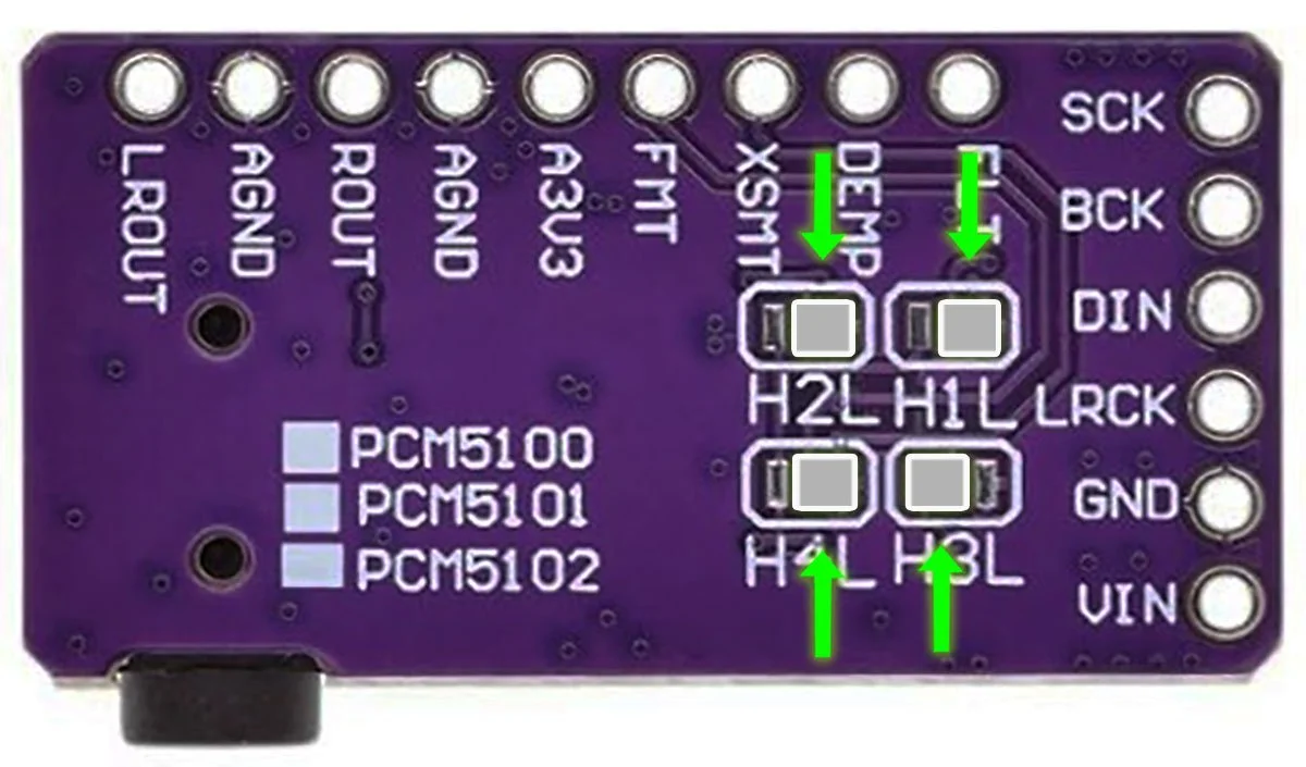 Step 10: bridge the pads on the bottom of the audio module if they did not come pre-bridged (many suppliers sell them un-bridged)